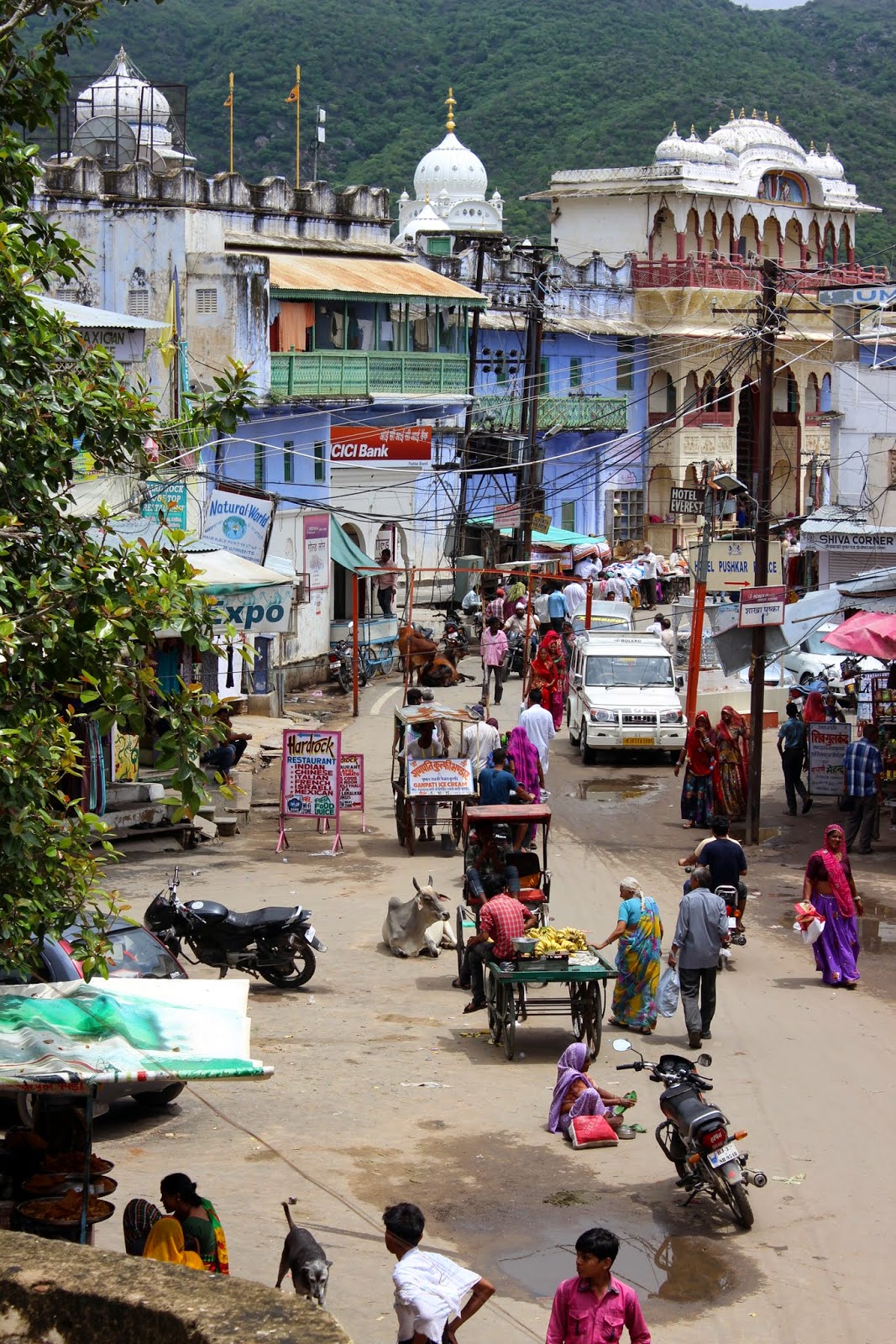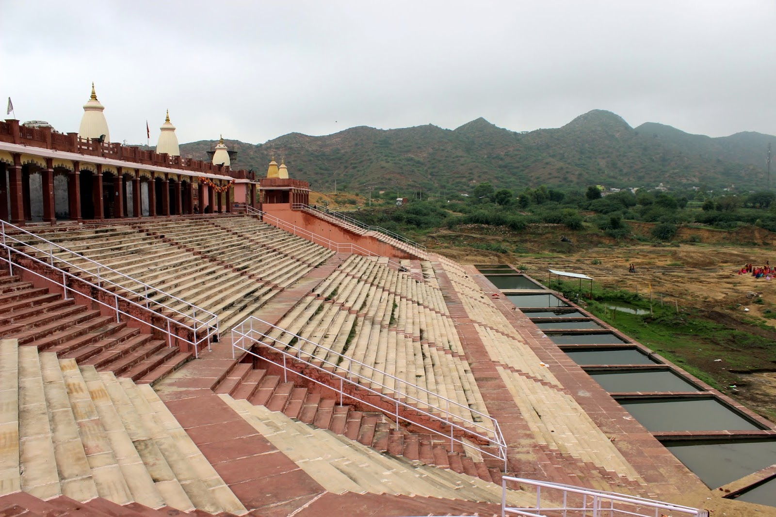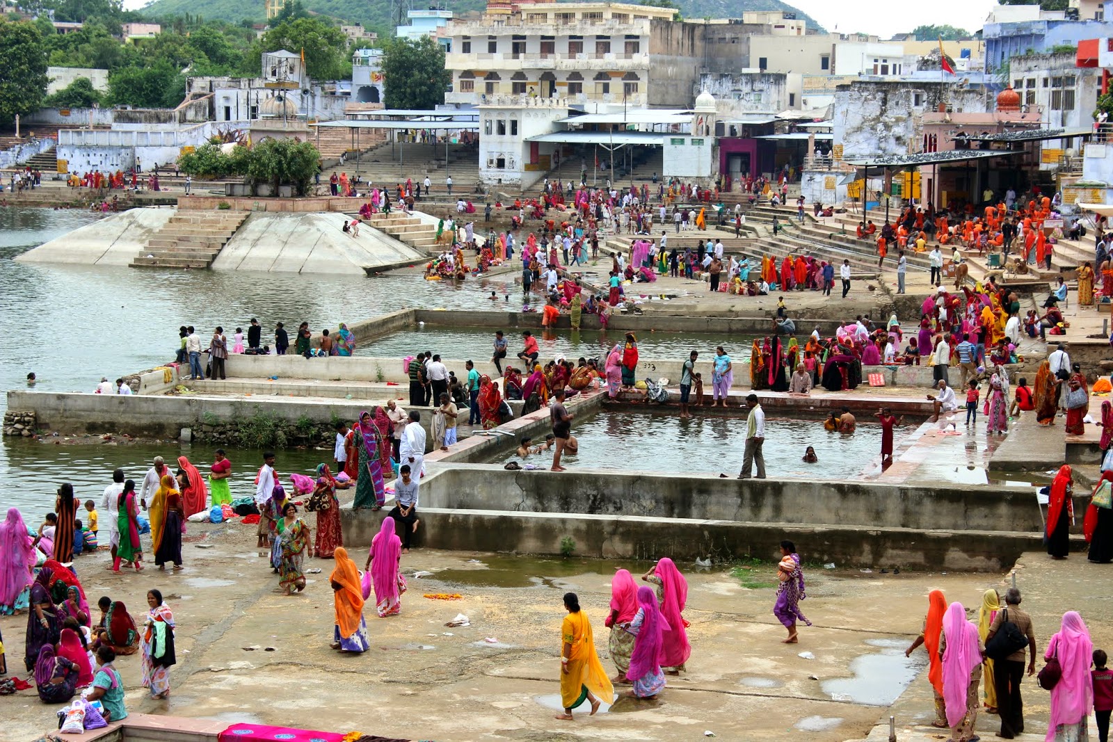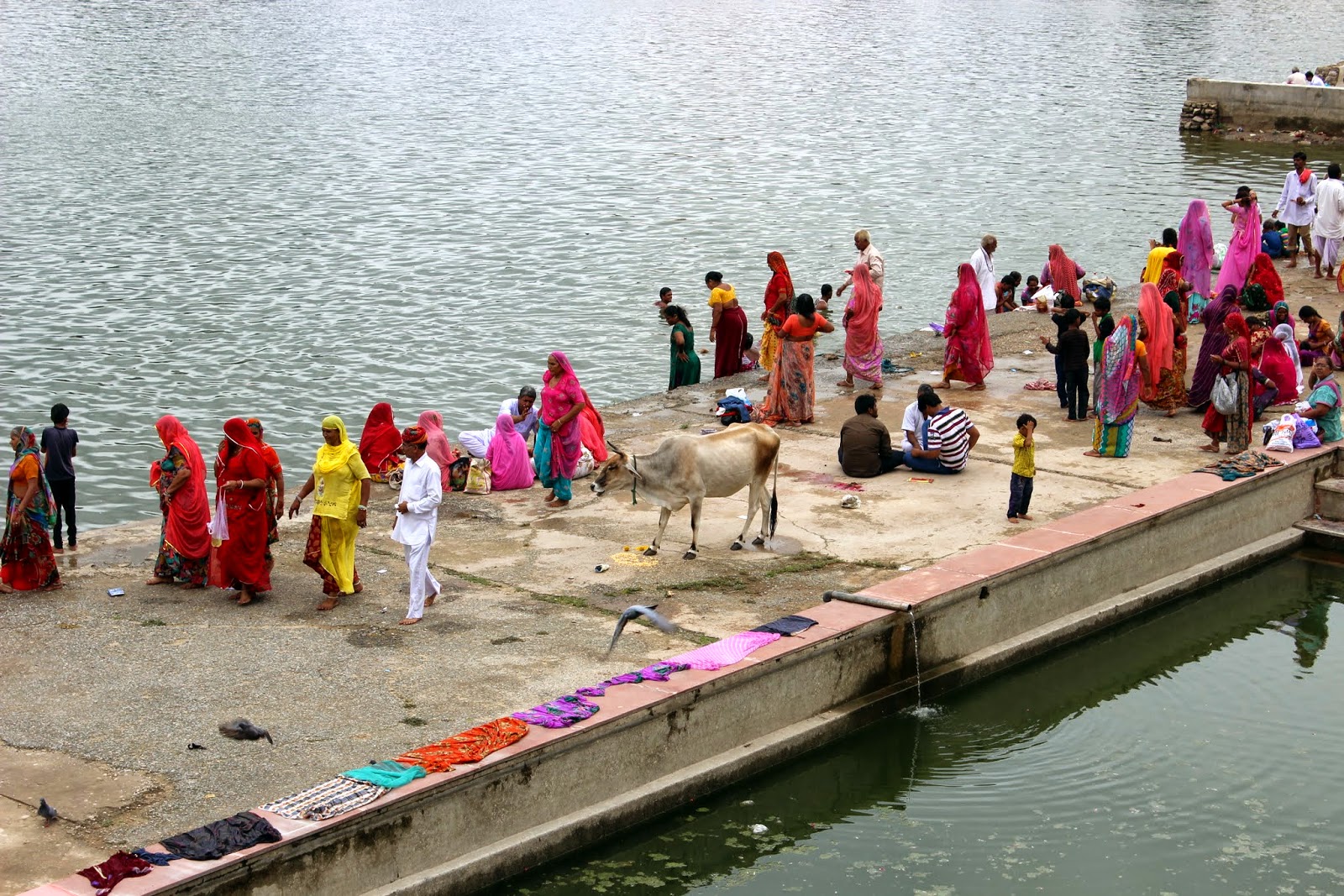 Petit arrêt au "old Pushkar". C'est un site que nous ont recommandé Patrick et Catherine parce qu'on pouvait y voir des pèlerins se baigner comme à Pushkar, mais avec la foule en moins et la possibilité d'être au plus proche des gens. Malheureusement, le festival finissait hier et ce matin, il n'y a plus personne. Dommage, mais on imagine très bien le tableau.