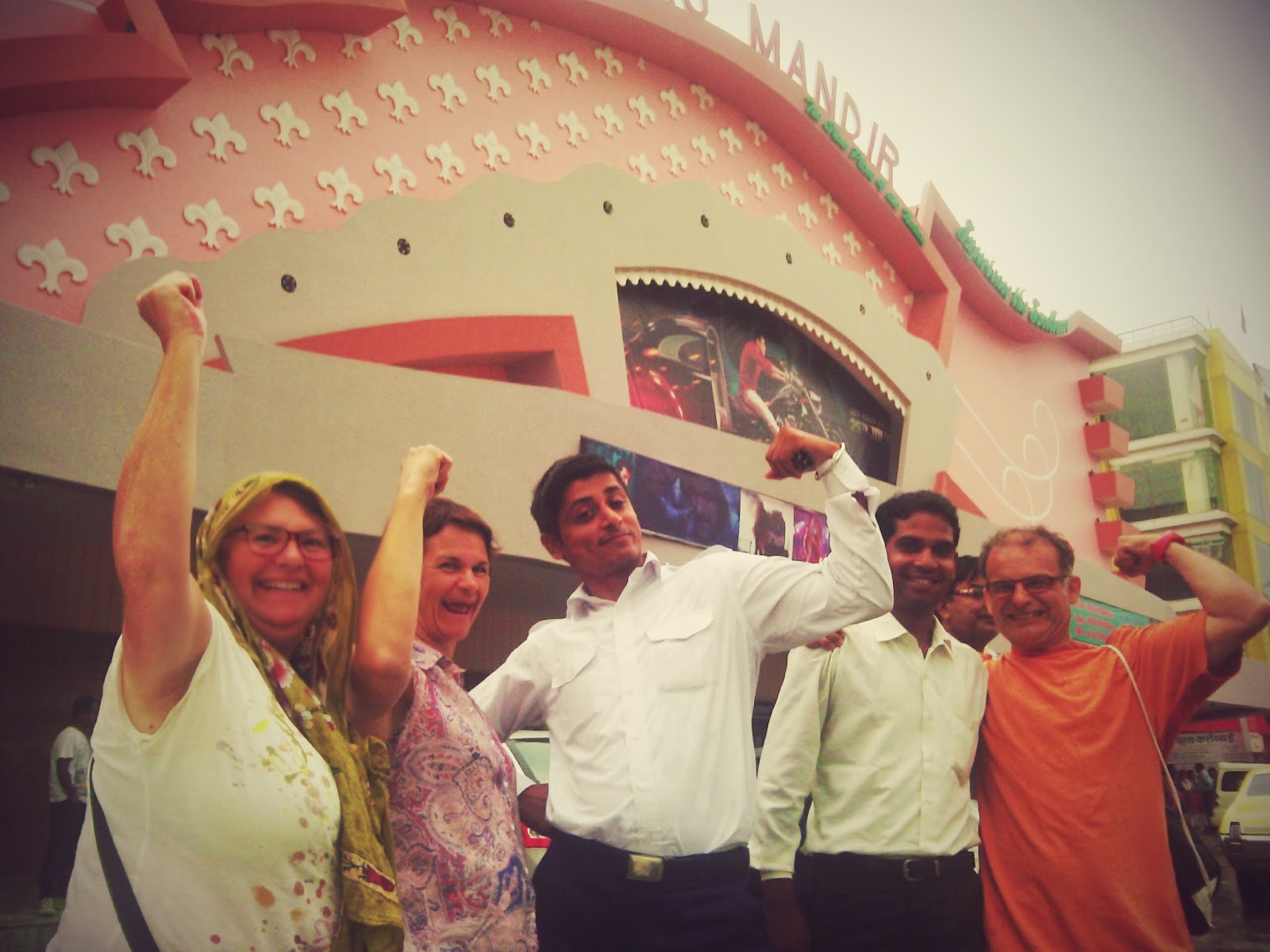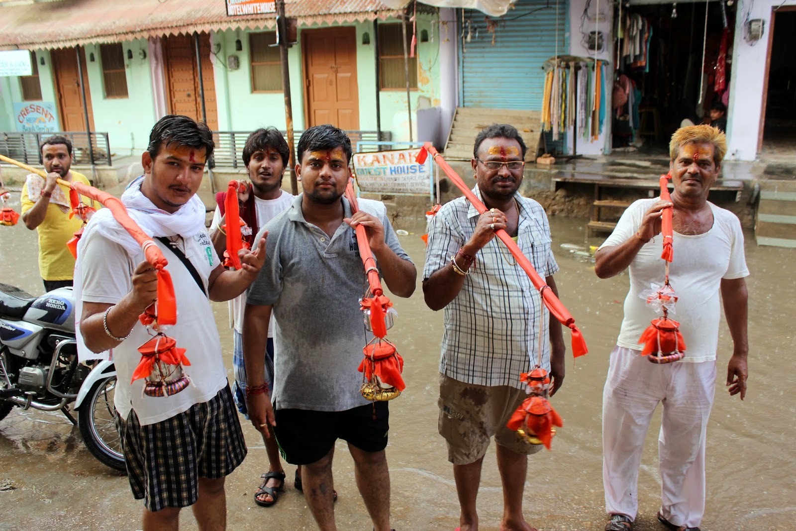 Sur la route de Jaipur, une route de bonne qualité il faut le souligner, nous dépassons de nombreux groupes de jeunes toujours en orange, qui font aussi des processions à pied. Ils rejoignent le fabuleux Gange et rentreront ensuite chez eux après avoir rempli leurs récipients de l'eau sacrée de ce fleuve. Ce qu'il faut savoir, c'est qu'on est à plus de 300 km du cours d'eau et qu'ils y vont à pied mais heureux et en musique s'il vous plaît!
