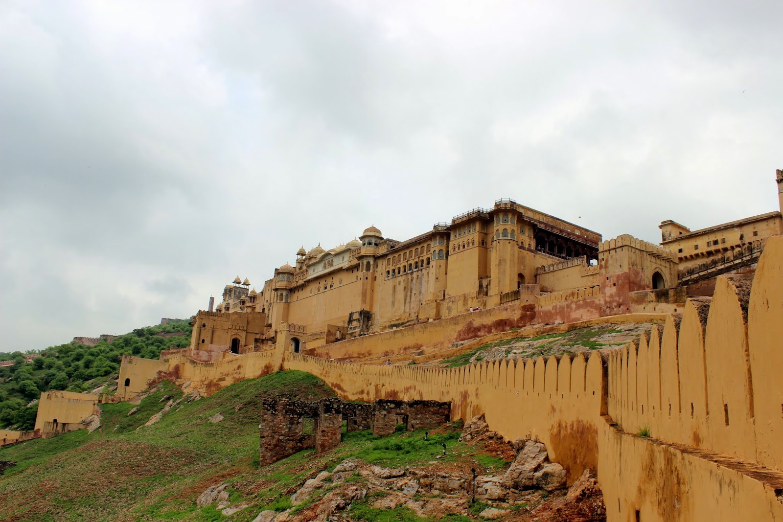 Arrivés à Jaipur, la ville dite rose en raison de la couleur semi rose semi ocre d'une partie des batisses du centre ville, juste le temps de trouver l'hôtel dans cette grande ville de plus d'1,2 million d'habitants. Gourav semble chercher sa route mais reste toujours aussi zen. Je ne sais pas, mais si j'étais chauffeur professionnel, je prendrai a minima une carte routière ou un GPS. Lui préfère s'arrêter et aller demander aux passants. Pour sa défense, il est vrai que les panneaux indicateurs sont rares. Déjeuner au restaurant de l'hôtel, le "Dera Rawantsar", qui ressemble de première abord à une grosse maison dans un quartier résidentiel. Accueil toujours aussi courtois, dans lequel on est reçu, pour compléter le livre des hôtes dans un bureau du maharadjah!