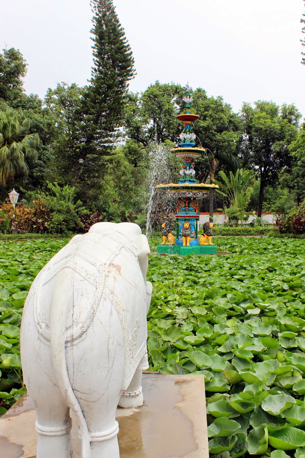 Nous commençons par nous rendre dans un joli parc floral. Quel contraste avec la ville si proche, mais aussi quel contraste avec les paysages désertiques de la région de Jaisalmer. Des gazons nickels, des fontaines dans tous les coins, des arbres jusqu'au ciel, mais surtout le calme.