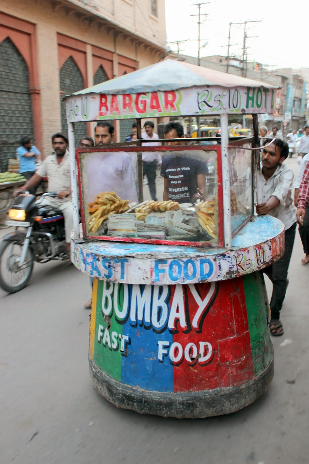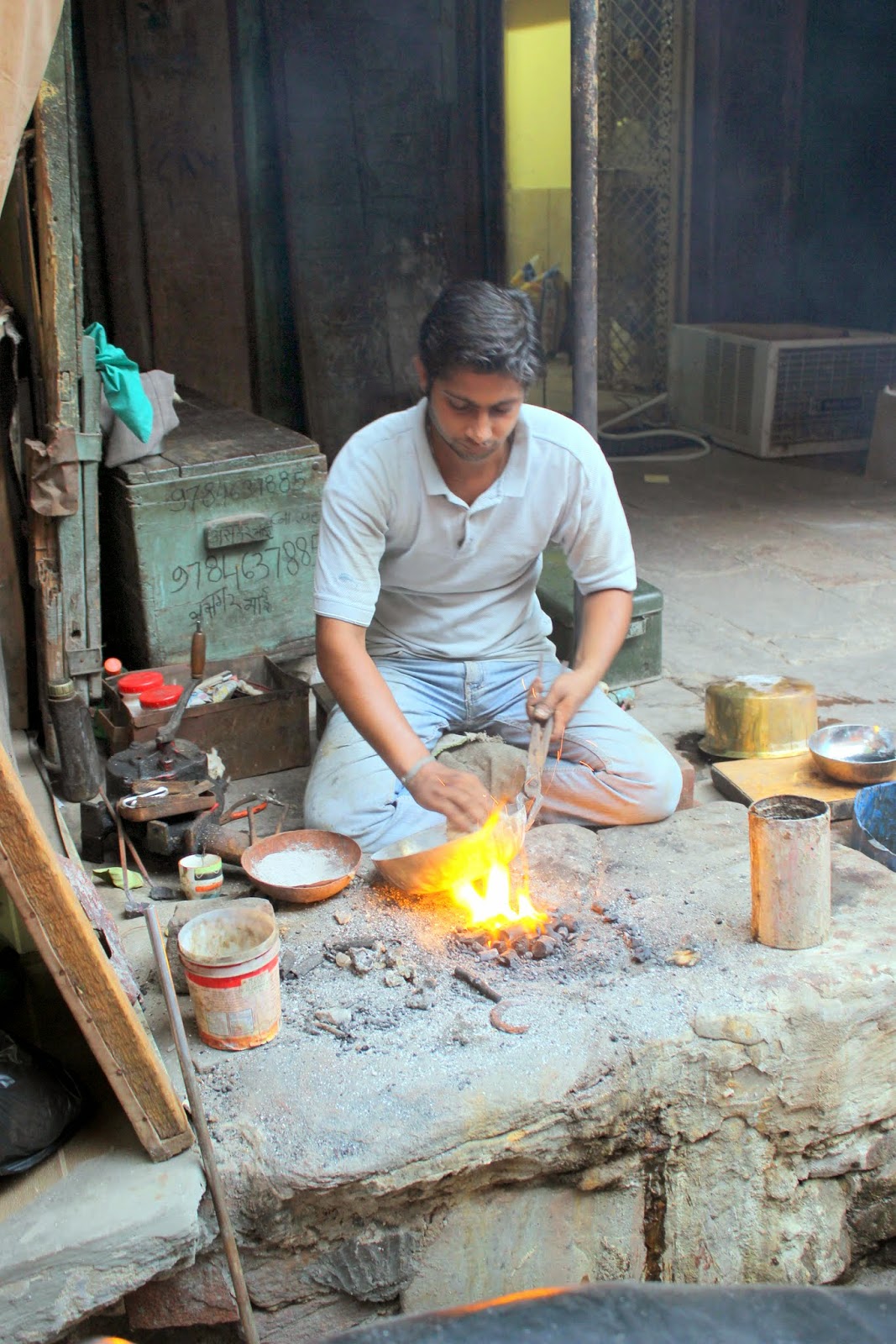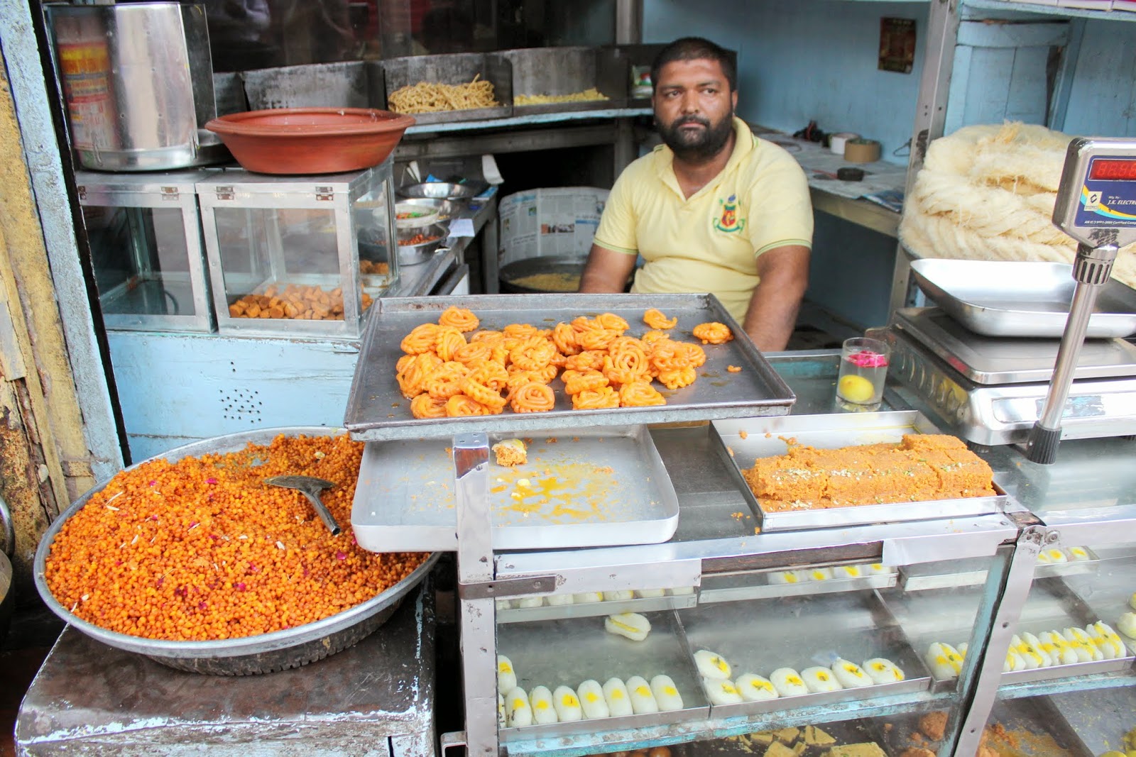 Gourav nous conduit ensuite tout près de la tour de l'horloge, lieu bien connu de cette grande ville (1 million d'habitants quand même). C'est le point central de la vieille ville et notamment du marché. Nous faisons d'abord le plein d'épices, et nous aventurons au hasard dans le marché. C'est dimanche et les commerces devraient être fermés. Mais non, et c'est dans un vacarme impressionnant et abrutissant que nous parcourons une partie de ce marché. Imaginez des ruelles très étroites avec un monde fou, des odeurs de toutes sortes et pas toujours des plus agréables, des scooters, des motos,des vélos, touk touk, des marchands ambulants, des coups de klaxons ininterrompus, tout ça dans la poussière et vous avez un spectacle à ne surtout pas rater.