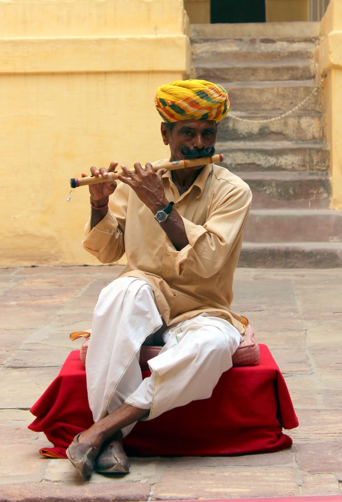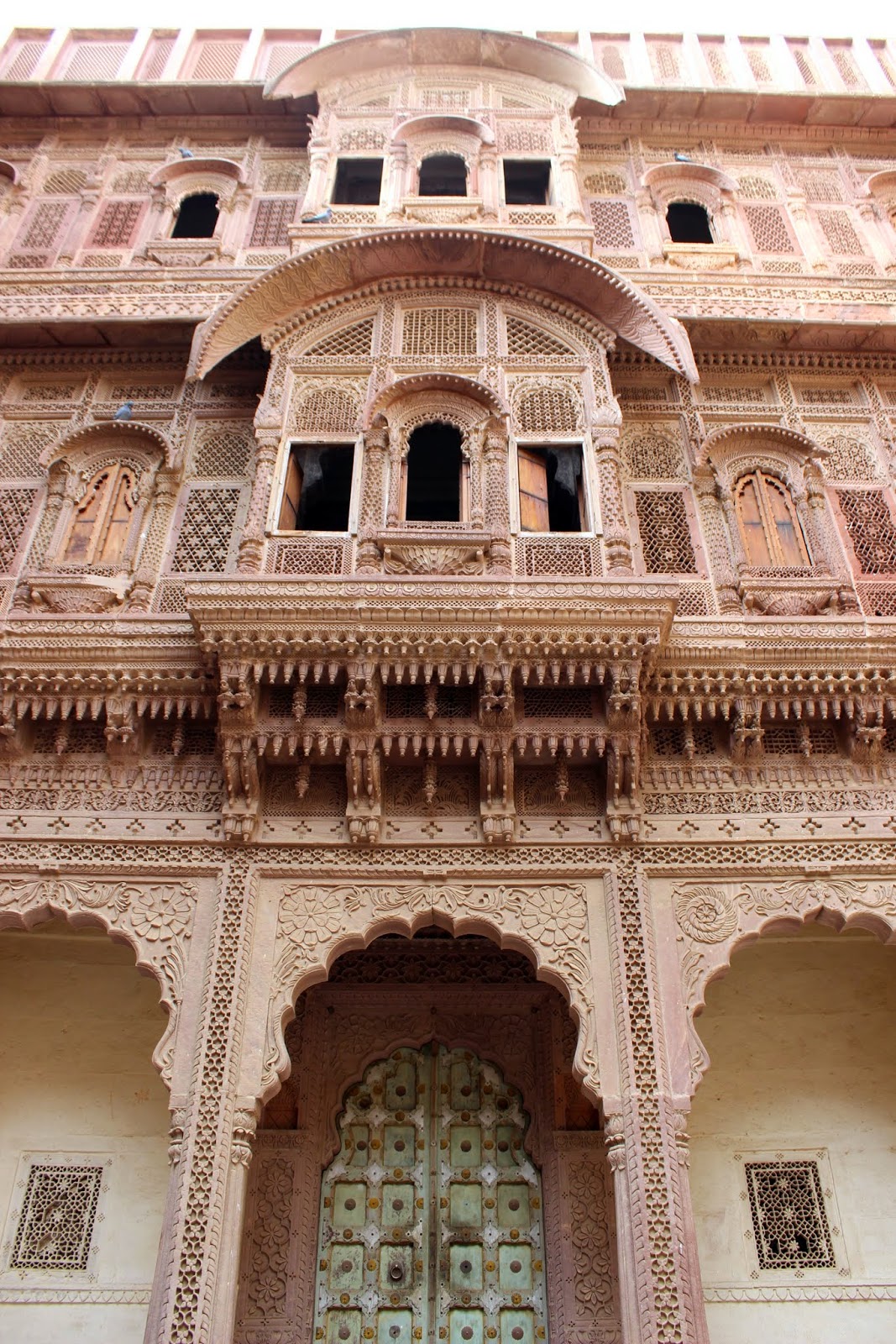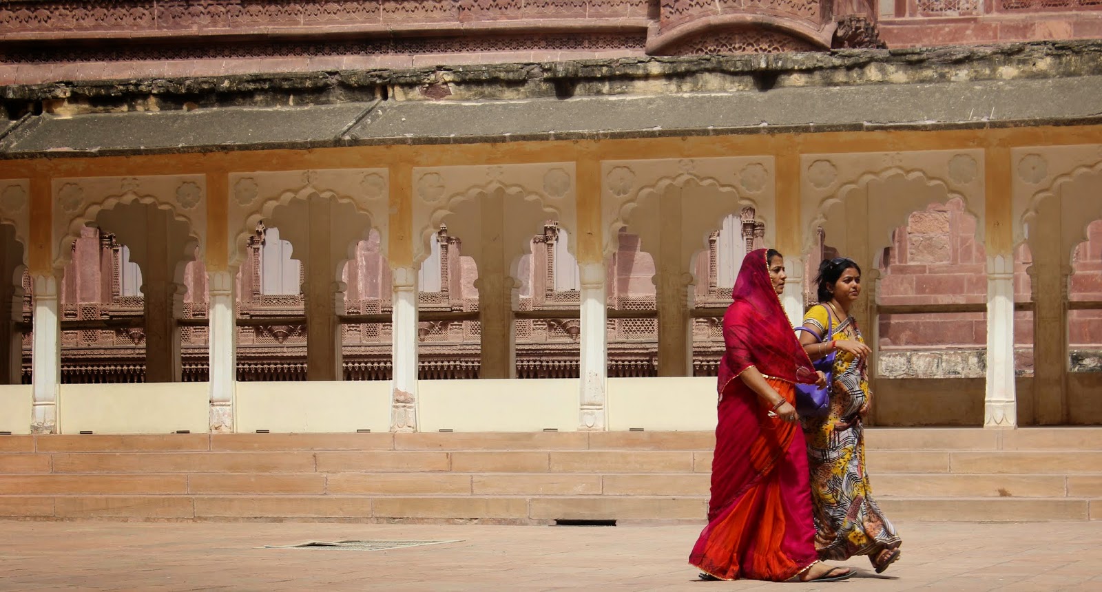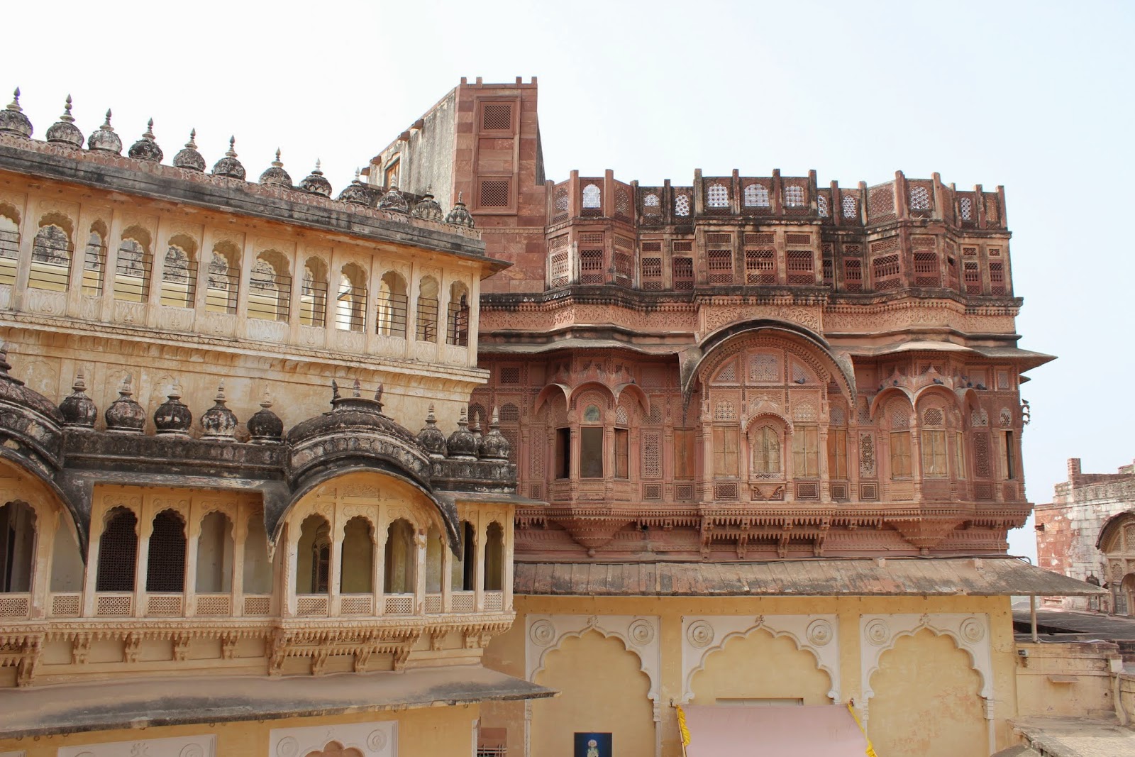 Biens sales, nous prenons possession de notre superbe chambre dans un haveli tout près de ce centre si vivant, mais sans le bruit qui va avec. Le restaurant au dessus offre un point de vue à 360 degrés sur la ville, son incontournable citadelle et ses palais environnants.
