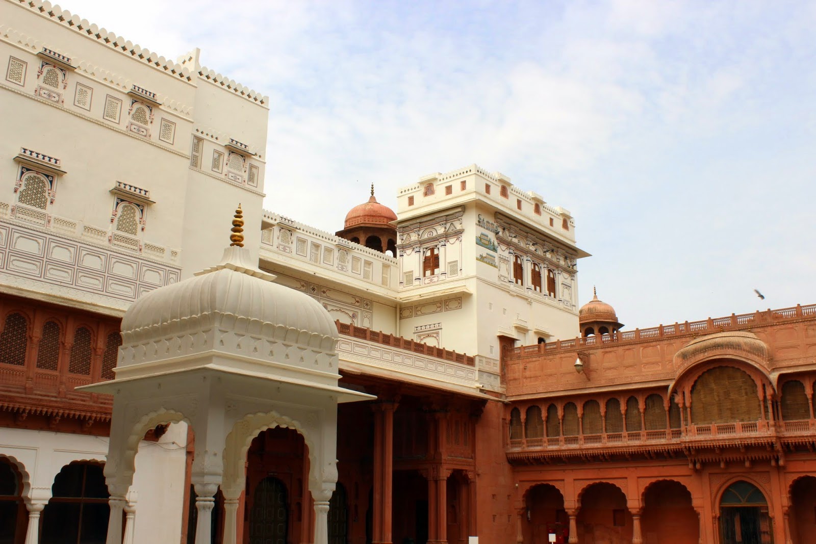 Nous rejoignons ensuite Bikaner où, après le lunch nous partons en touk-touk visiter d'abord le fort. Magnifique et à apprécier à sa juste valeur. Les salles s'enchaînent les unes après les autres. On y découvre la vie des Maharajahs, qui contrairement à ce qu'on pense, ont régné jusqu'à il n'y a pas si longtemps que ça. C'est de l'histoire moderne. La splendeur du site nous fait imaginer la vie de ces nobles indiens qui vivaient sous une influence très fortement britannique.