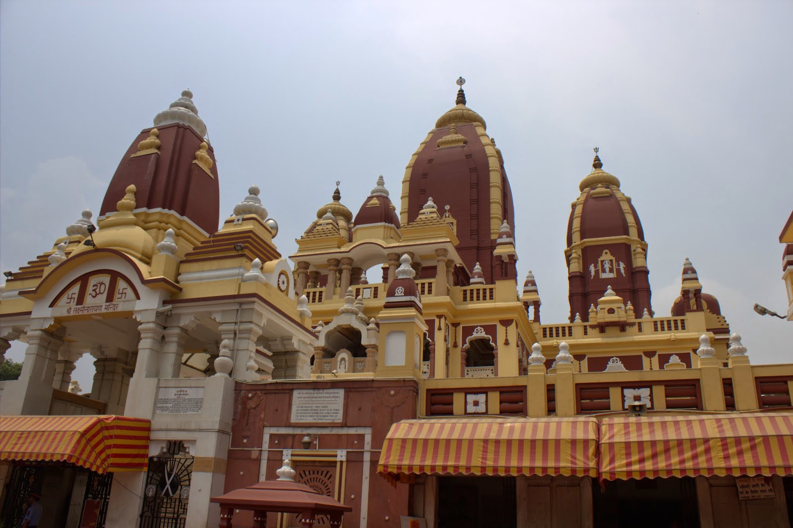 L'éclectisme religieux de l'Inde nous fait ensuite visiter un temple hindou (1ere religion du pays). Style rococo, sécurité maximum. Ce qui est toujours bizarre, ce sont ces croix gammées qui font parti du style (les svastikas utilisées par on sait qui très longtemps après mais à l'envers). Joli lieu de recueillement où nos plantes de pieds semblent à vif )